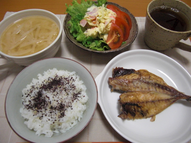 最近はほぼ毎日朝ごはんを摂れているので、たまに寝坊したりして抜くと仕事もなかなかやる気が出ません。やっぱり朝ごはんて大切なんだなぁと思うこの頃。とは言っても夕飯の残りの味噌汁&おにぎり(冷凍しておいたのをチン)とか、パン&牛乳とか、時にはヨーグルトかキウイが付いたり、「温めるだけ」「切るだけ」「そのまま」の簡単なものだけど無いよりはマシですよね(^_^;)