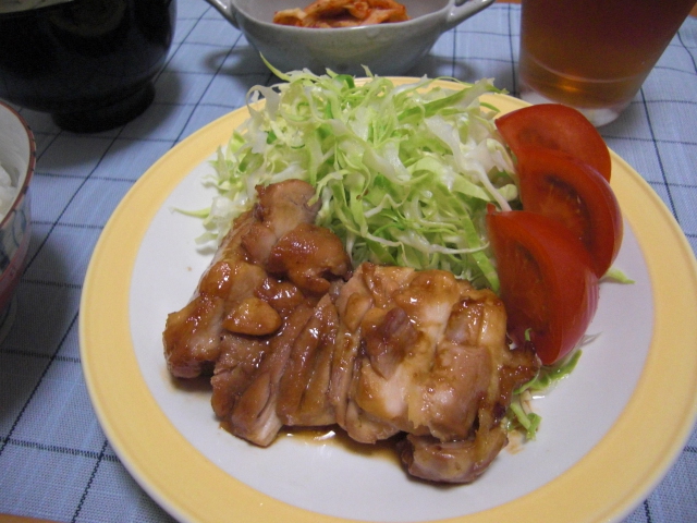 写真はモモ肉一枚焼いたうちの半分。もう半分は明日の朝、照り焼きチキンサンドにして食べよう♪と残してあります。