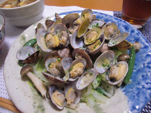 ・アサリとキャベツの酒蒸し