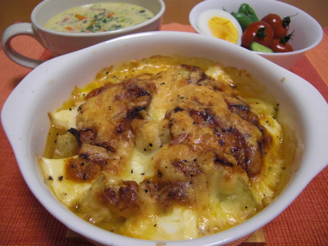 そうこうしているうちに賞味期限が…(-_-;) なので考えたメニューがグラタン。
