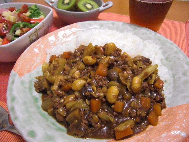 水分が足りないかな?と思いましたが、豆腐から出る水分が多いのでなかなかいい具合で、一方水分の抜けた豆腐もこれまたいい具合になって美味しい。