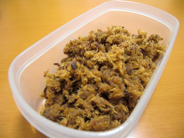 作り方は、ワラサを一度熱湯で茹でてザルに揚げ、鍋に醤油・砂糖・酒・みりん・おろし生姜を入れて火にかけ沸騰したら茹でたワラサを加えてほぐしながら煮ます。