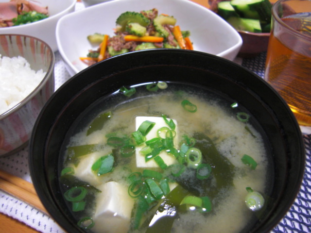 具は味噌汁の定番、わかめと豆腐です。