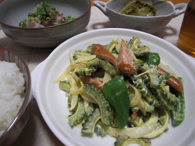 昨日に引き続きゴーヤーメニューです。じつはゴーヤーがたくさんあるので…(^_^;)