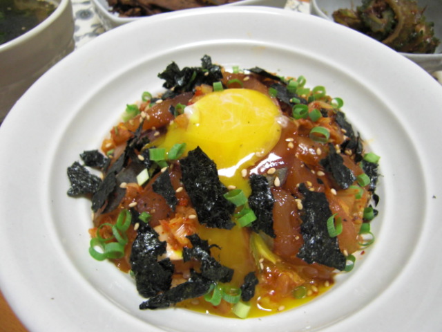 そしてそのブログ(魚料理と簡単レシピ)のレシピも参考に、イナダでユッケ丼を作ってみました。