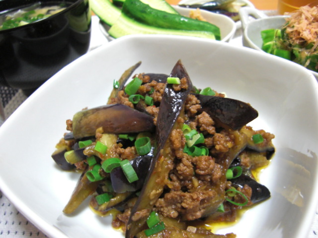 茄子がたくさん入っていたので挽き肉と炒めたり味噌汁に入れたり。