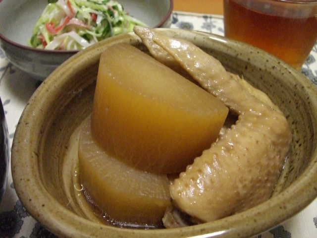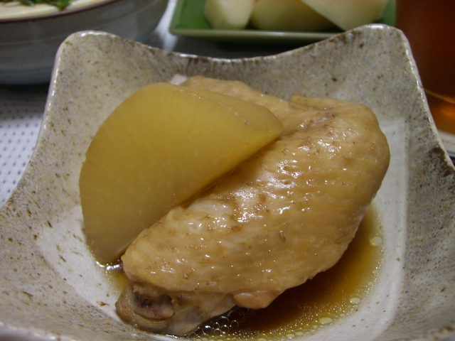 大根と手羽先の煮物、味の染み込みはまだまだです。