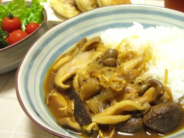 昨日の夕飯はきのこをたっぷり入れたカレーライスでした。