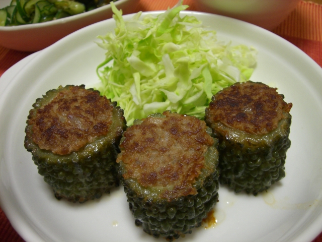 ゴーヤは母が作ったもので、ゴーヤがメジャーな食材になった頃から手を出すようになって、はじめの頃は一本、二本しか採れなかったのにだんだんコツを掴んだのか今年はたくさん採れるとのこと。そう言えば前は黄緑の弱々しいやつだったけど、今年は緑が濃い!匂いも緑々した匂いがします。立派なゴーヤです。
