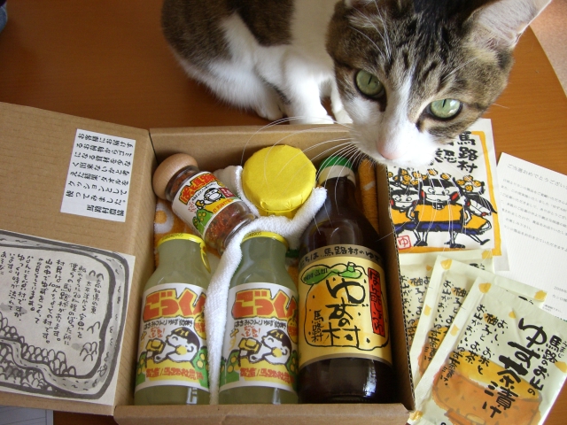 七味・ジャム・ポン酢・ゆずドリンク・ゆず茶漬け・入浴剤が入っていました♪