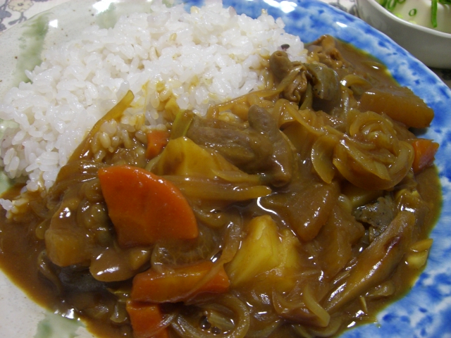 先日のもつ煮込みをアレンジしてカレーを作ってみました。