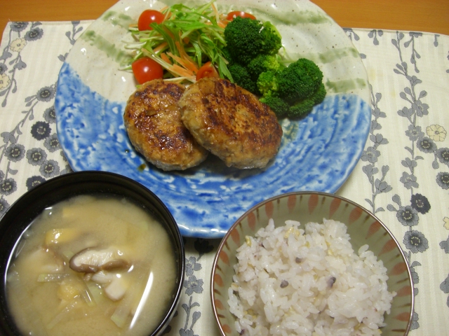 で、フープロに付いて残った味噌が勿体無くて、そこにハンバーグのタネを入れて作ったのが今日のゴハン♪
