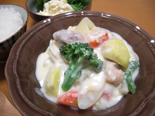 NHKの「きょうの料理」でプロの方が作っていたクリームシチューを真似てみました。