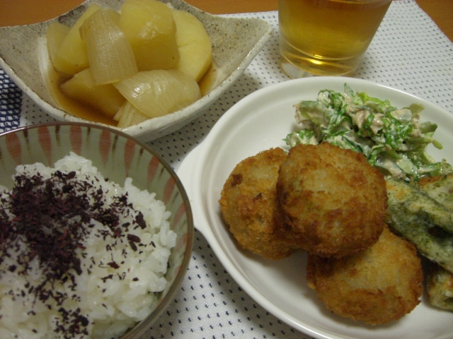 メインになりそうな食材がなかったので、ごはんにちょっと手を加えて混ぜごはんを作りました。
