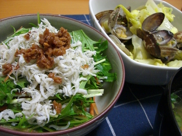 ・シラスと水菜の梅サラダ